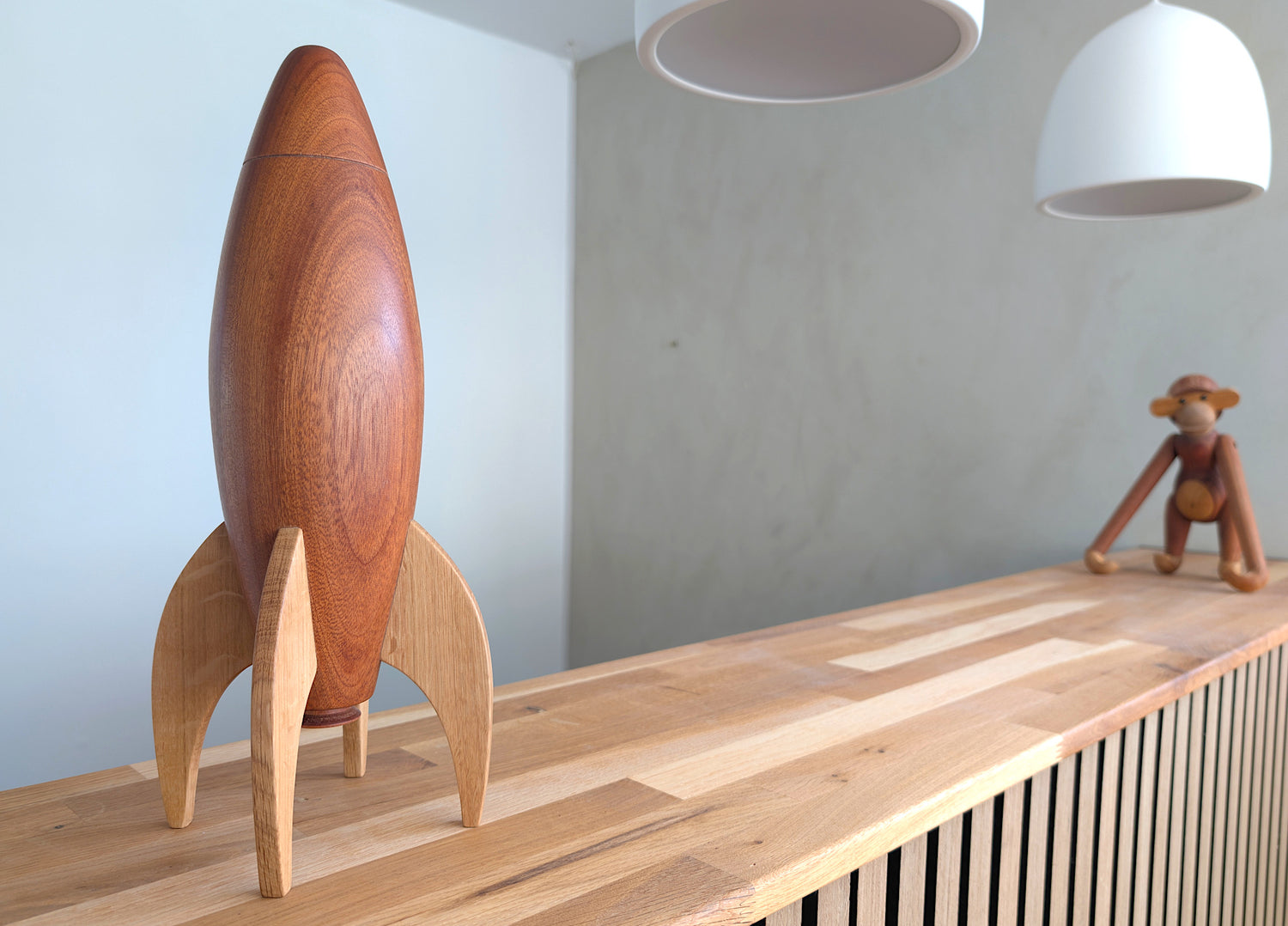 Denne retro-raket er inspireret af 1950'ernes fantastiske forestillinger om rummet og rumskibene der skulle bære menneskeheden derud. Derudover er det første design i Space-serien her i butikken.