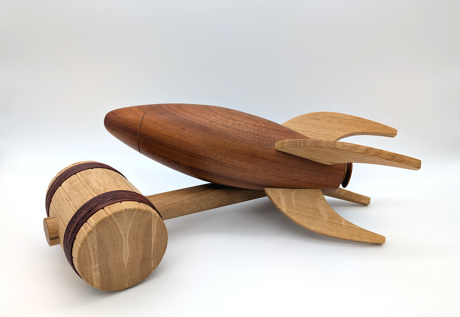 Rakettens krop er formet i ét stykke Sapele mahogni, hvortil fire finner i egetræ er fastgjort. Det hele er olieret og har fået et beskyttende lag voks.